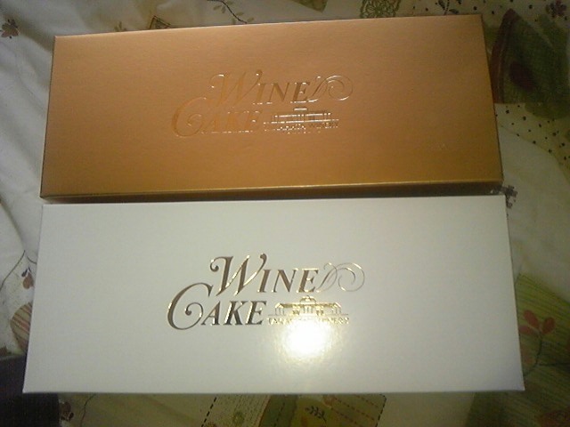 褐色の箱が赤ワインケーキ。
